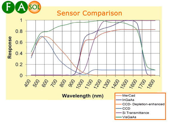 InGaAs探測器:波長探測范圍 900nm – 1750nm;帶電子半導(dǎo)體制冷器(TEC)的InGaAs探測器,可冷卻穩(wěn)定在 -40℃以下,無需使用危險的液氮制冷劑; InGaAs探測器分辨率為320x240,像素點(diǎn)尺寸為30 x 30um,更大的像素點(diǎn)面積可以收集更少的光子,探測靈敏度是普通640x480 InGaAs探測器的4倍;連續(xù)收集信號時間從1微秒到60分鐘;有效波段范圍內(nèi)量子效率(QE)為 80-85%;靈敏度 NEI <1x1010 ph/cm2/sec;量子效率>70 QE 在950-1700nm范圍內(nèi)。