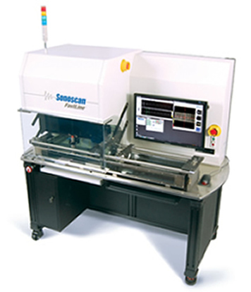 為了提高生產車間內微電子元器件的篩查效率,Sonoscan 專門設計了Fastline? P300? 超聲波掃描顯微鏡。作為超聲顯微成像技術的新平臺,F(xiàn)astline的緊湊設計縮小了占地空間,其獨特的輸送系統(tǒng)能夠在掃描一個JEDEC托盤或樣品盤的同時將下一次要掃描的樣品放在水中的另一個托盤上等到掃描。 Fastline? P300?特色: 獨特輸送系統(tǒng)有助于實現(xiàn)產量的提高 C-SAM 杰出的超聲顯微成像技術 超聲顯微技術的杰出之處在于它能夠在組件和材料中找出可能在生產或可靠性試驗中出現(xiàn)的隱藏的缺陷。 不同于X射線和紅外成像等其他無損檢測技術,超聲顯微成像技術則是利用超聲波對材料彈性特性較為敏感的特性。超聲波可能會因為接觸物質的改變而被吸收、散射或反射,而且對空氣間隙特別敏感。 Sonscan? 提供多種成像模式,操作員可以根據樣品內部結構特征選擇適當?shù)某上穹绞揭垣@得有關檢驗樣品的掃描圖像。此外,通過利用我們的專有的先進功能,Sonscan可以提供高清晰的圖像、高效率和良好的檢測結果。 Sonscan的C-SAM成像技術用于發(fā)現(xiàn)及分析在生產過程或可靠性測試過程中出現(xiàn)的缺陷。比起其他檢測方法,使用超聲顯微成像方法更能有效地識別并分析脫層、空洞及裂縫等缺陷。 |